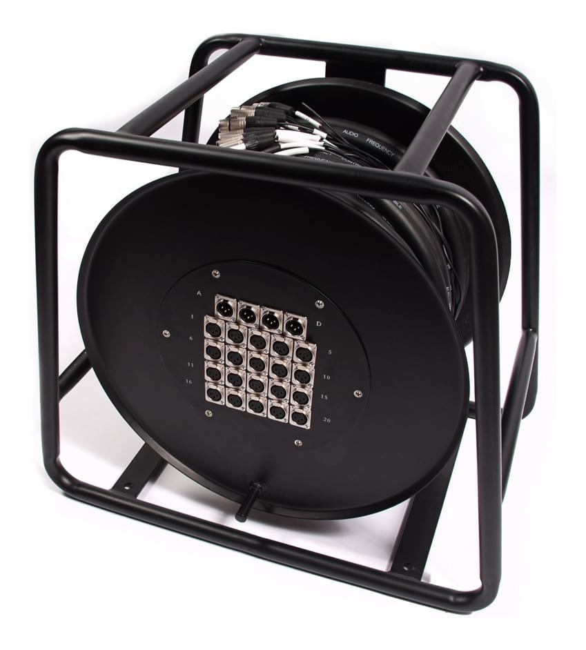 Sends: 32 XLR Connectors Returns: 8 XLR Connectors Length: 90 Feet Fantail and stage reel are both clearly numerically labeled Fantail is color coded as well 100% individually shielded pairs